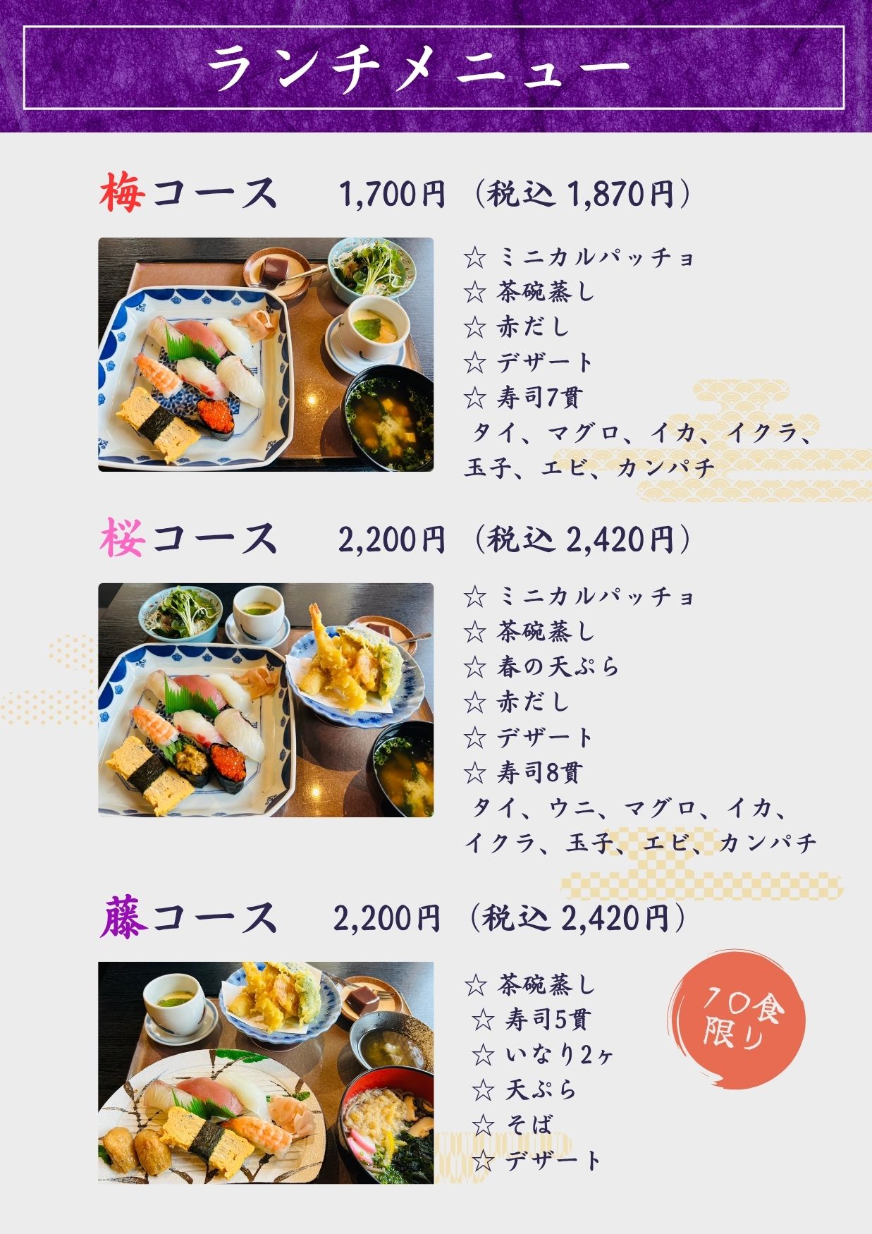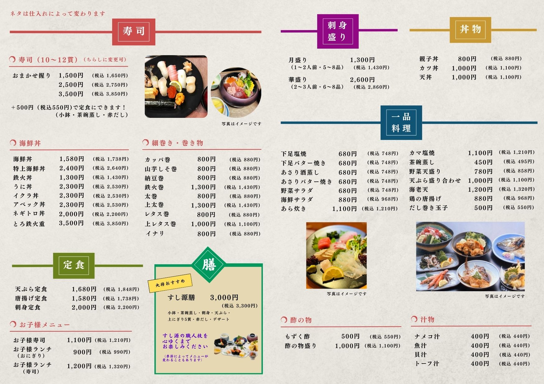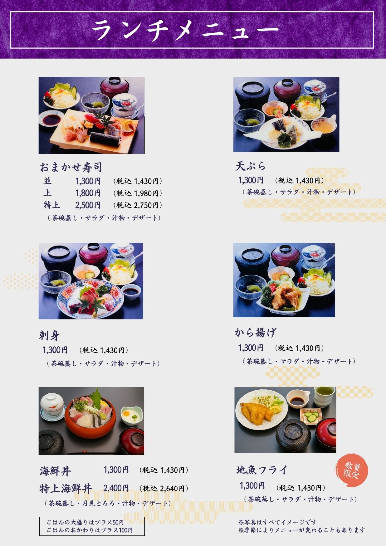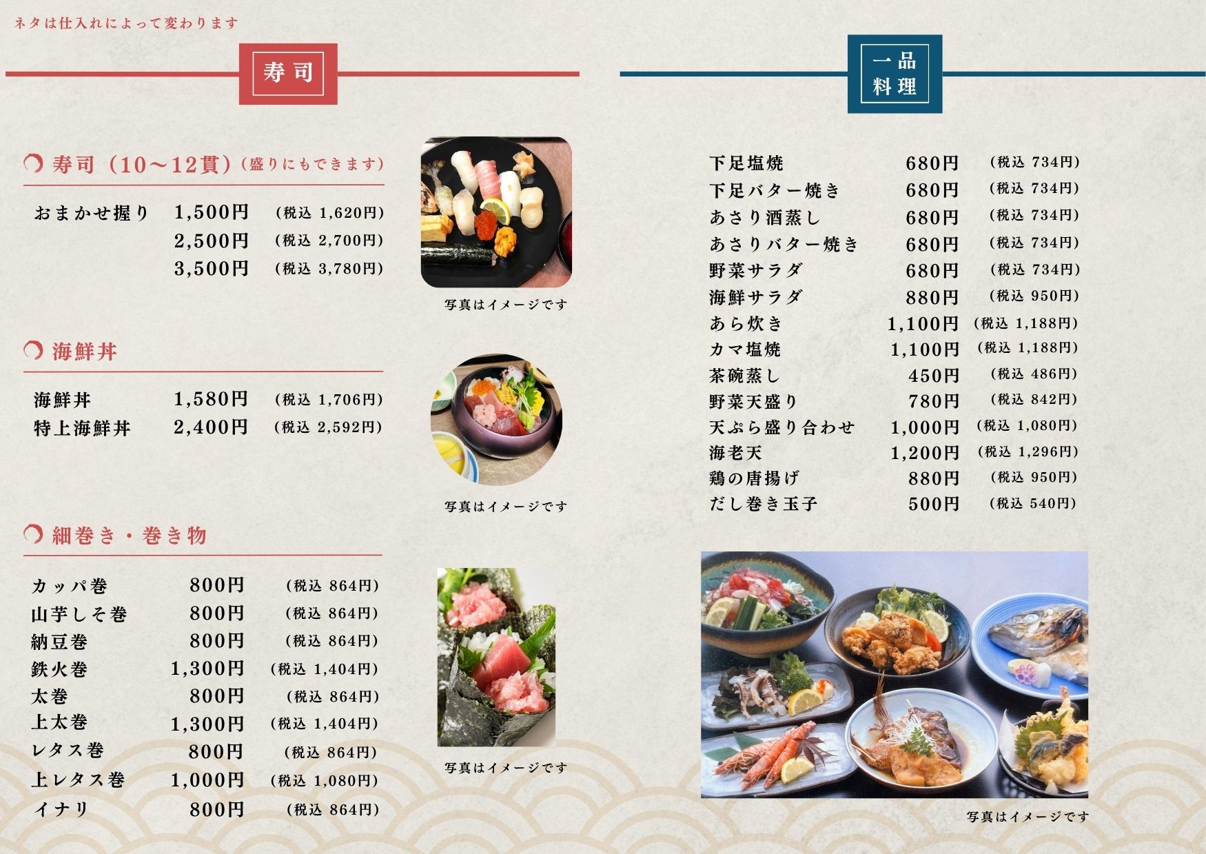 - 食材の仕入れ状況により、一部メニューがご提供できない場合がございます